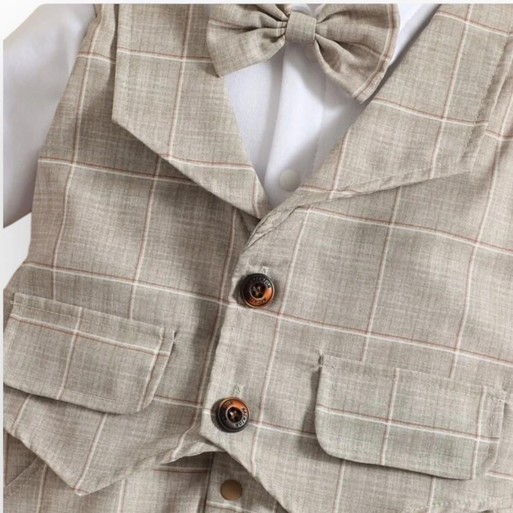 بدله لون بيج أولادي أنيقة، تجمع بين الراحة والأناقة لطفلكِ. تصميمها العصري يجعله مناسبًا للمناسبات الخاصة أو الاستخدام اليومي، بينما توفر خاماته الناعمة راحة تامة للطفل طوال اليوم.